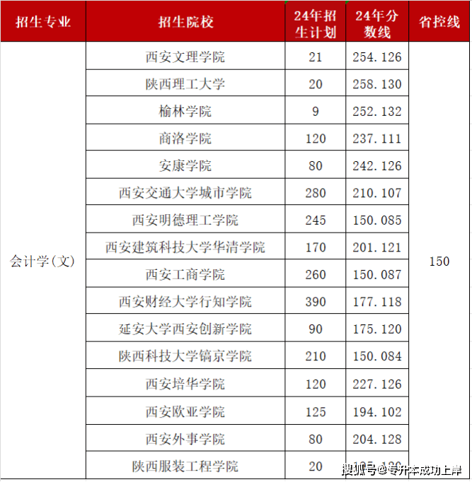 通俗本科及职教本科招生打算24年会计学招生院校共16所,此中公办有5所,平易近办有11所。招生人数共2240人,其安财经大学行知学院招生最多,390人;榆林学院招生起码,只要9人。24年公办登科分数线最高的是陕西理工大学,258分;平易近办登科分数线最高的是西安培华学院,227分。