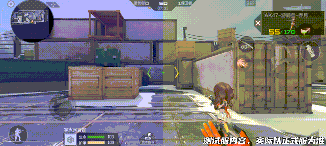 掌中宝兵器的动做也是一个趣味点。点击按键后,乔月会腾跃到玩家的左手手臂,简单摆pose之后会拿起AK47-逛马队向左手发出刺刀,可能是不想让“你”弄乱了她的头发~随后利用一个炫酷的扭转腾跃回到左手手心之中。