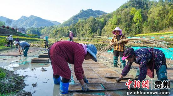 眼下,正值水稻育苗期,连日来,沿河自治县抢抓春耕备耕环节期,组织各乡镇全面启动育秧工做,鼎力推广农业机械化手艺,强化手艺办事指点,为本年水稻的丰收打下根本。近日,正在沿河自治县塘坝镇金竹村的水稻机械化育秧,水稻秧盘育秧播种机正开脚马力运转,村平易近们正在流水线上熟练地操做着。传送带上,育秧盘一个个地排着队,播种、覆土等法式,再由村平易近集曲达移到无纺布大棚。
