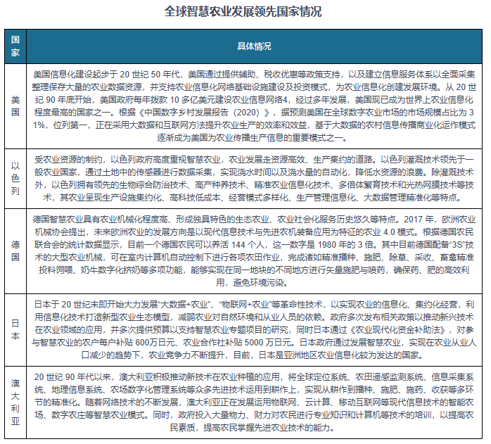 聪慧农业是以消息和学问为焦点要素,通过互联网、物联网、大数据、人工智能和智能配备等现代消息手艺取农业跨界融合,实现农业出产全过程的消息、定量决策、智能节制、精准投入、个性化办事的全新农业出产体例,是农业消息化成长从数字化到收集化再到智能化的高级阶段。聪慧农业是聪慧经济主要的构成部门。对于成长中国度而言,聪慧农业是聪慧经济次要的构成部门,是成长中国度消弭贫苦、实现后发劣势、经济成长后发先至、实现赶超计谋的次要路子。聪慧农业是现代消息手艺取保守农业深度融合构成的数字化农业体例,是农业的底子出,也是当前国度鼎力成长的财产,正在鞭策农业现代化中阐扬着至关主要的感化。全球都正在加速聪慧农业结构,加深人工智能、大数据、云计较等手艺正在农业范畴的使用。此中美国、以色列、、日本、等国度的聪慧农业成长程度、聪慧农业的软硬件手艺程度处于较为领先的地位。