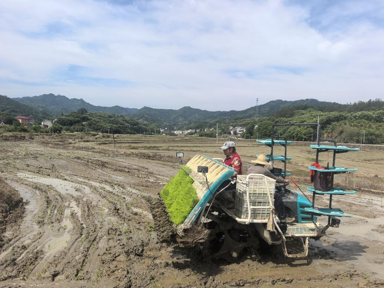 近日,正在舒城县河棚镇龙骨村的广袤农田里,机械轰鸣,插秧机和旋耕机穿越功课,呈现一派忙碌气象。